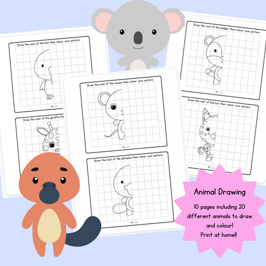 Animal Drawing and Colouring Pack - PDF Digital Download