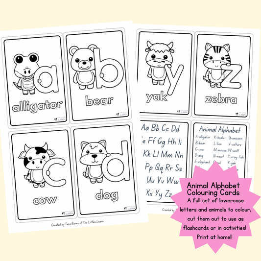 Animal Alphabet Colouring Cards - PDF Digital Download