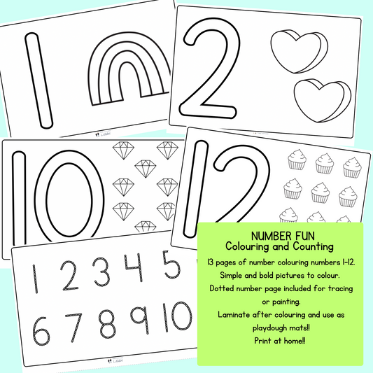 Number Fun - Colouring and Counting Book - PDF Digital Download