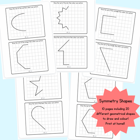 Symmetry Shapes Drawing and Colouring Pack - PDF Digital Download